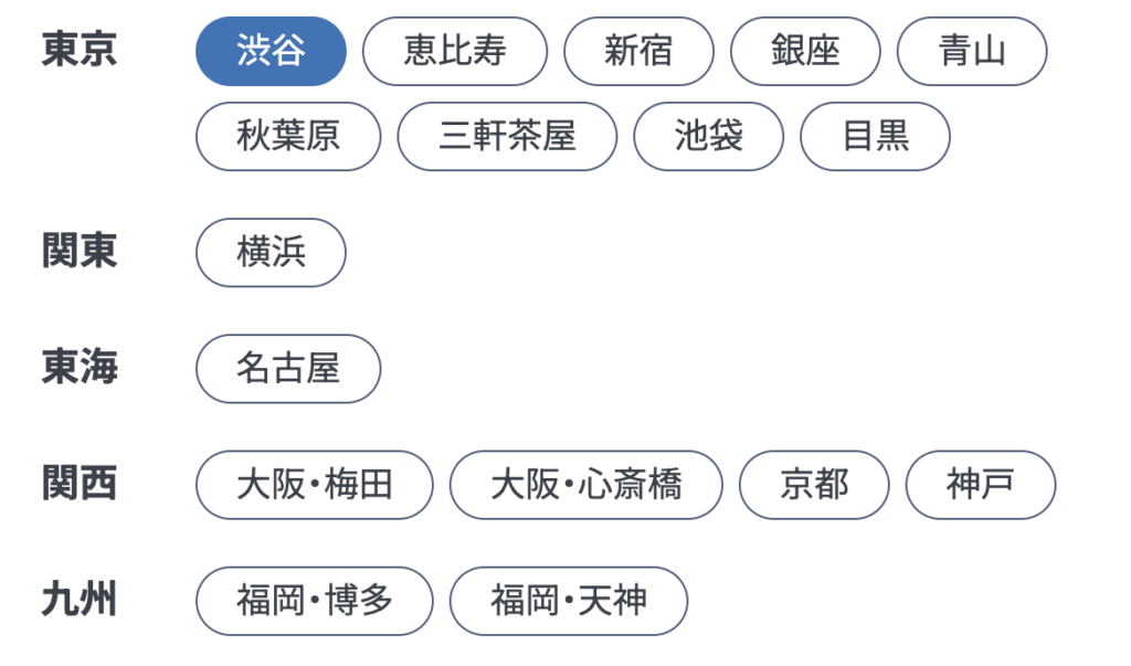 渋谷・新宿・銀座・青山・秋葉原・横浜・名古屋・大阪梅田・京都・福岡博多・福岡天神